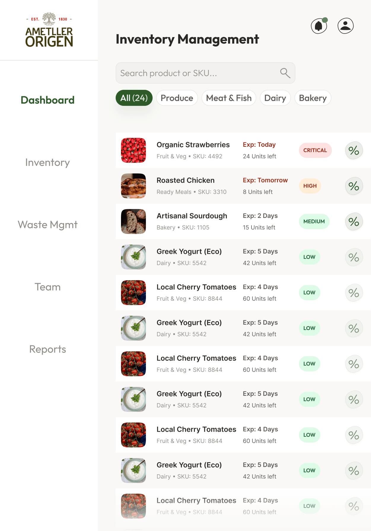 Smart Inventory Manager is a tablet-based dashboard designed to help store managers monitor product expiration and take action quickly.