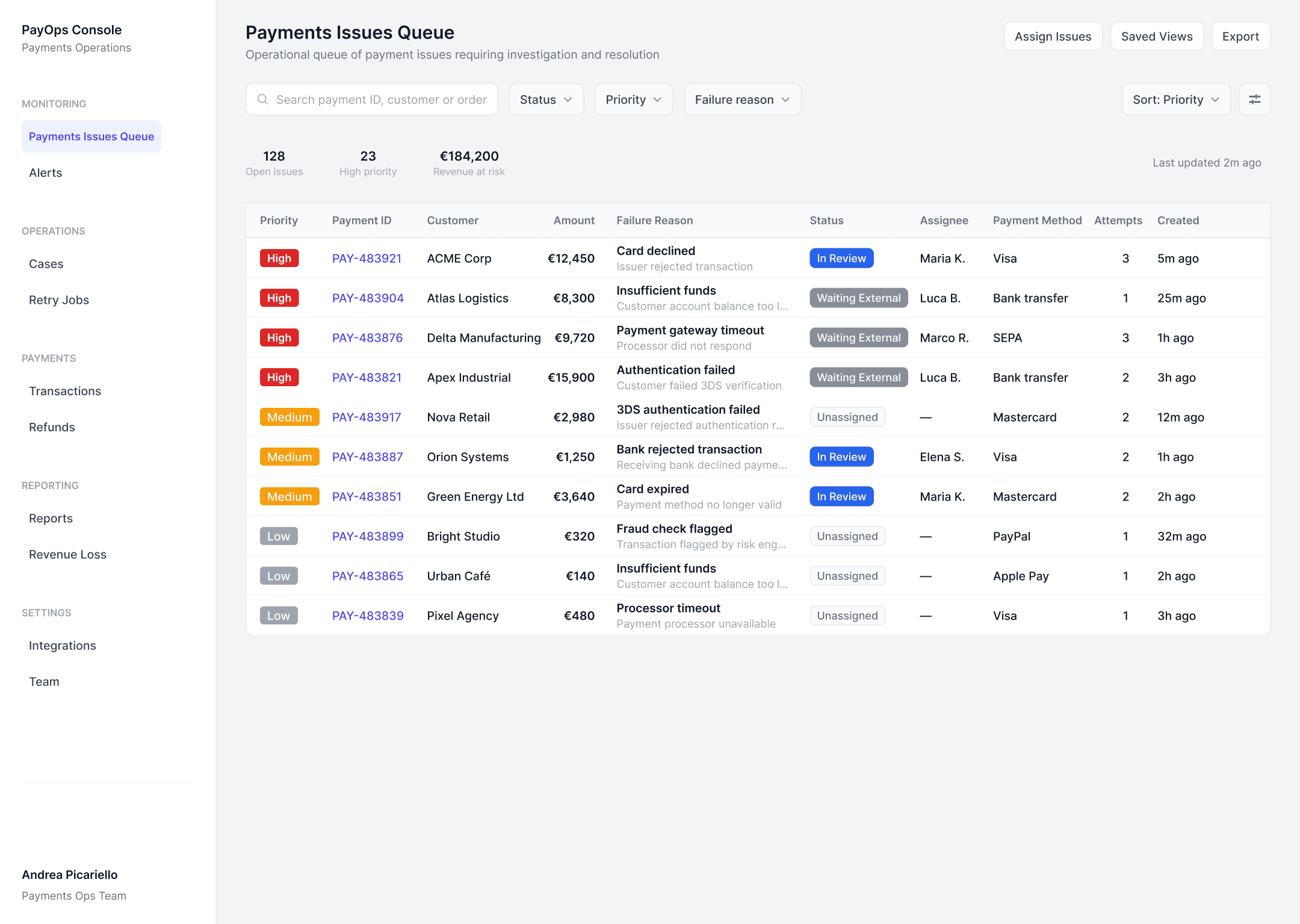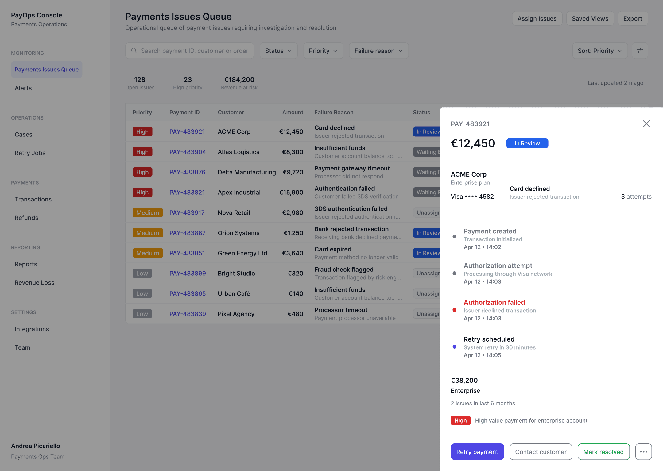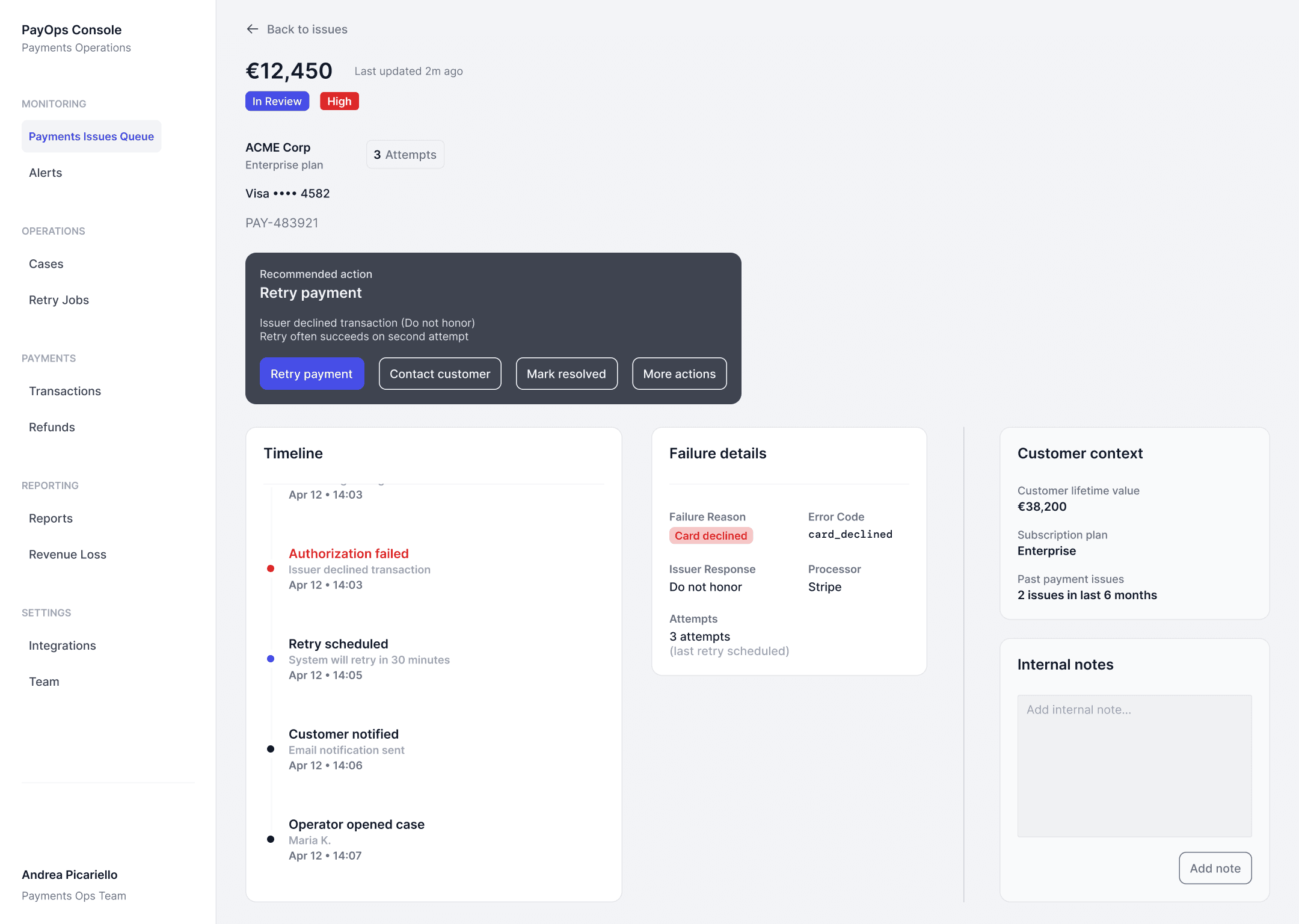 Payment Operations Console is a SaaS tool designed for payments operations teams to manage problematic transactions.
