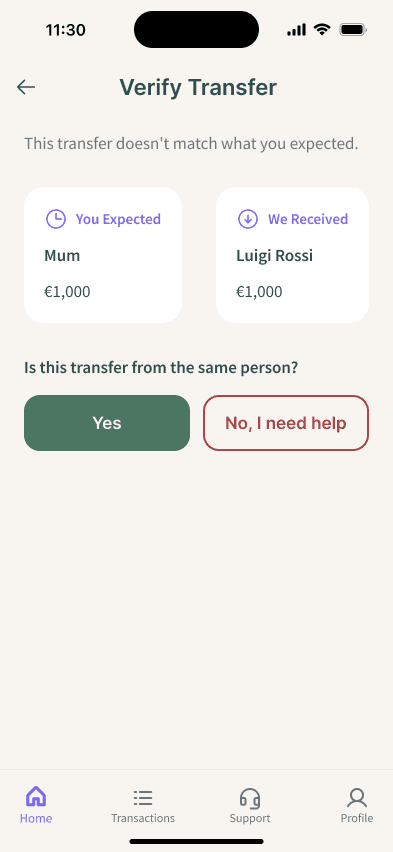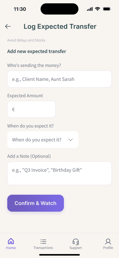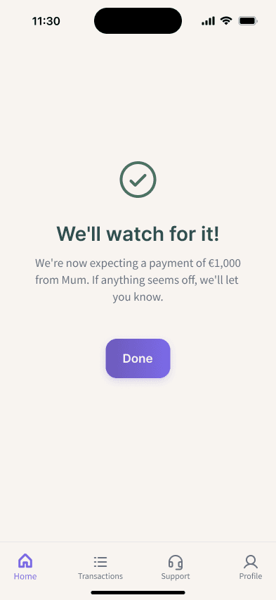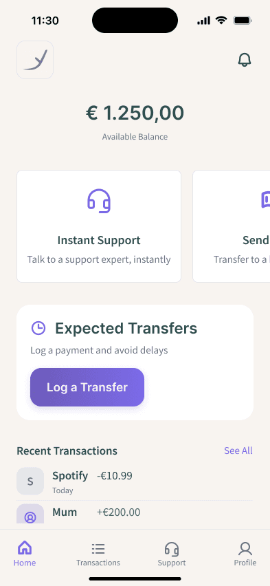 To address this, I designed the “Expected Transfers” section as a core element of the home screen.