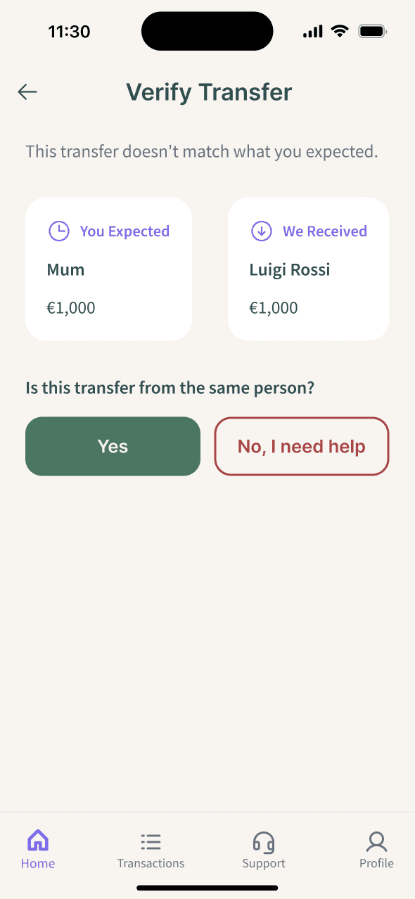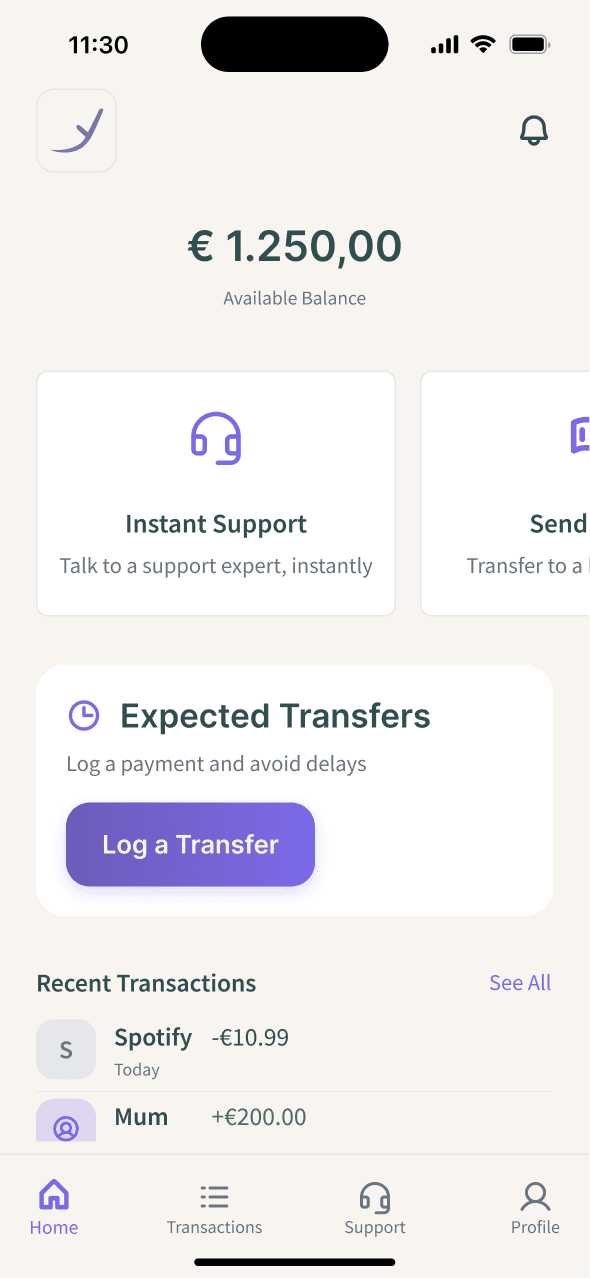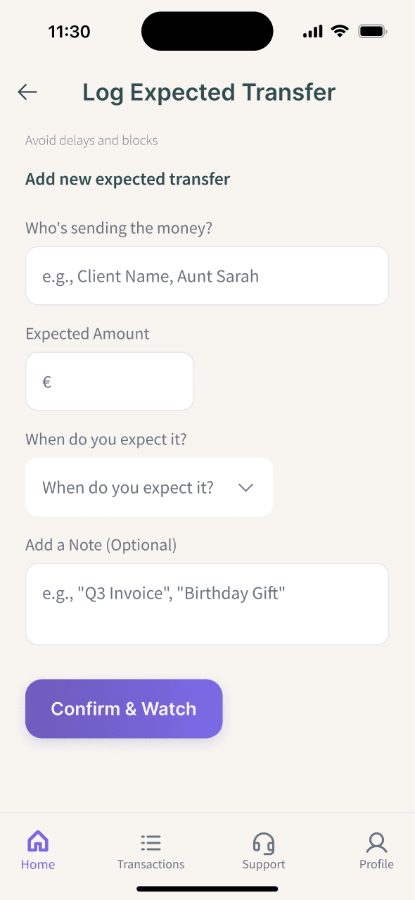 To reduce uncertainty, the app introduces Expected Transfers, allowing users to anticipate incoming payments instead of reacting to issues.